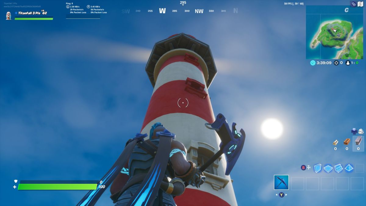 Located right at the top of the map in the northwest, the Golden Pipe Wrench is at the very top of the lighthouse itself, so you ought to land on top of it or prepare for a whole lot of walking up some stairs. C1 on the grid.